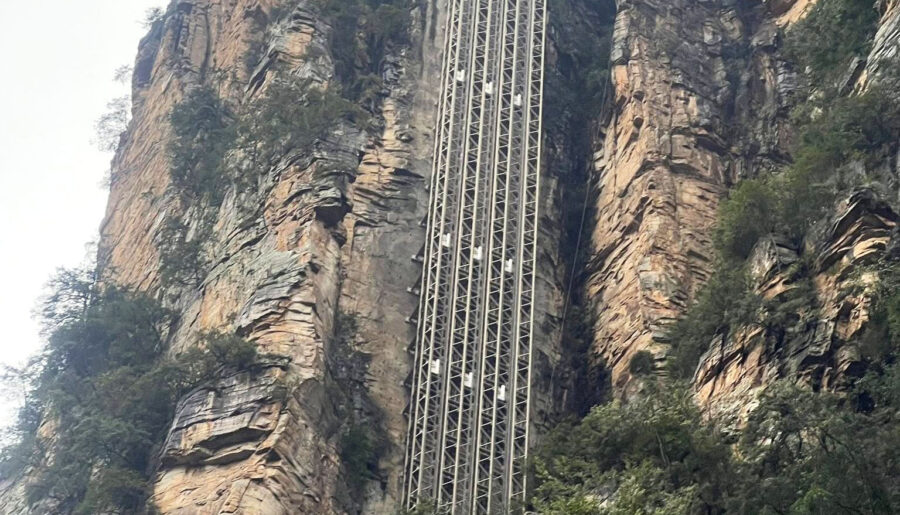 During our visit to Zhangjiajie, the Wulingyuan area was part of our tour itinerary. Wulingyuan is a scenic region located within China’s Zhangjiajie National Forest Park. To avoid a two-hour hike, we opted for the glass elevator to access the highlights at the summit. The Bailong Elevator, also known as the Hundred Dragons Heaven Elevator, is a glass double-deck elevator constructed on the side of a cliff in the Wulingyuan area of Zhangjiajie. It is the world’s tallest elevator that transports visitors up a 326-meter cliff face made of quartzite sandstone in less than two minutes providing stunning panoramic views of the that inspired the film Avatar. It was officially recognized by Guinness World Records as the tallest outdoor elevator in the world on July 16, 2015 and is claimed to be the fastest passenger elevator with the highest loading capacity.