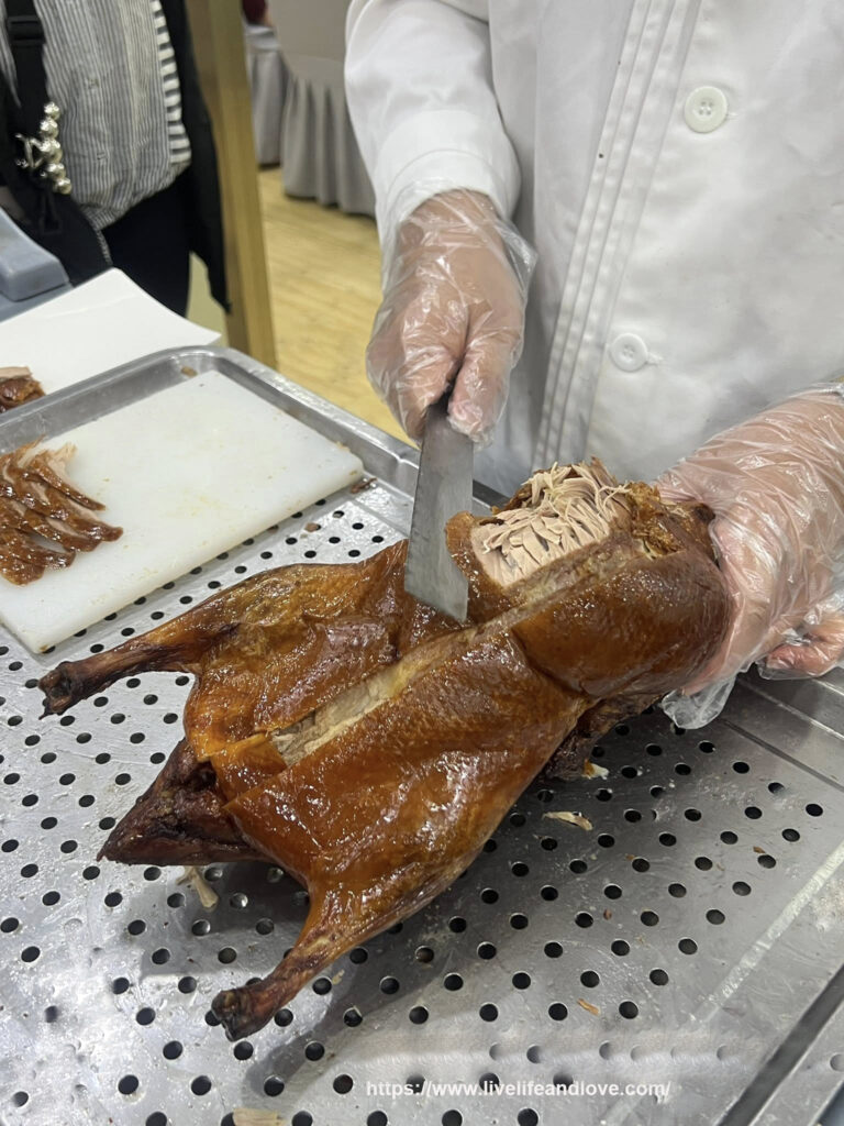 The Peking duck is looking great, perfectly cooked, and the smell is fantastic. It was incredibly delicious, and the skin is wonderfully crispy.
