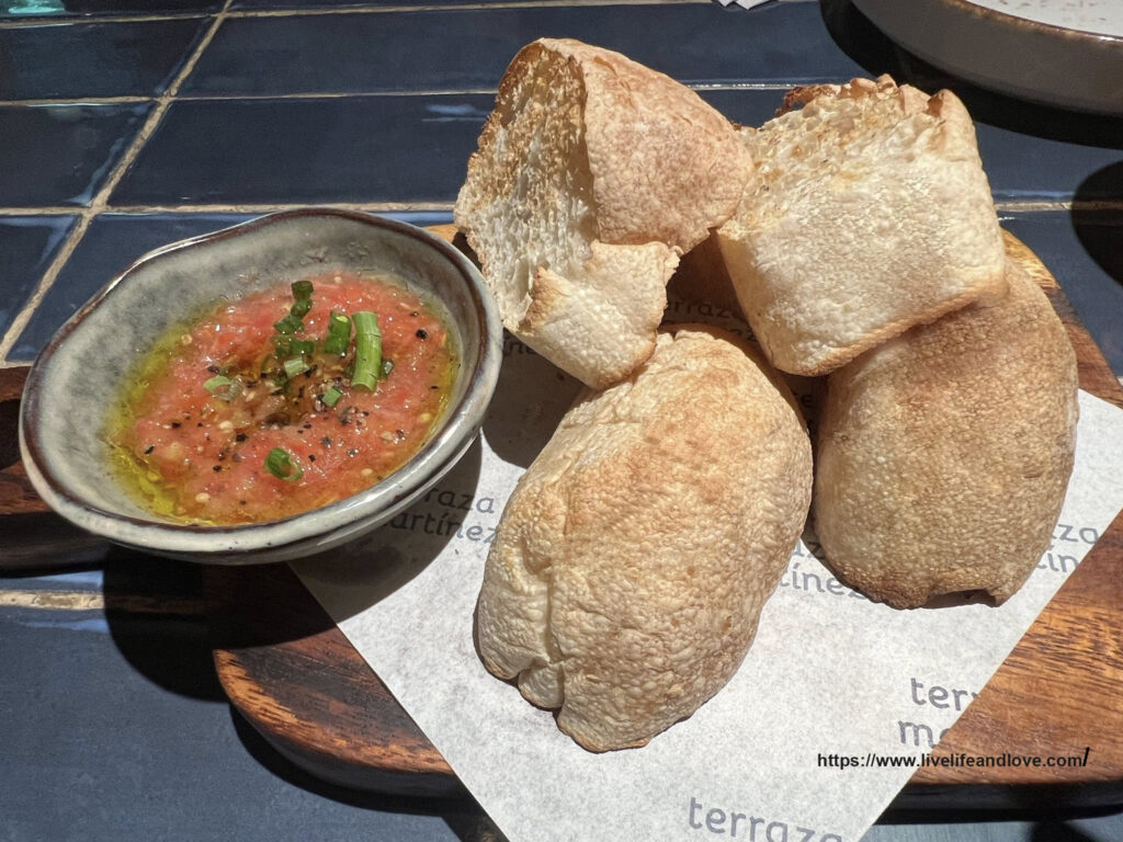 We were served with complimentary bread, frequently characterized as warm, crispy, and accompanied by olive oil with tomato salsa. The complimentary bread was a delightfully delicious and remarkable start.