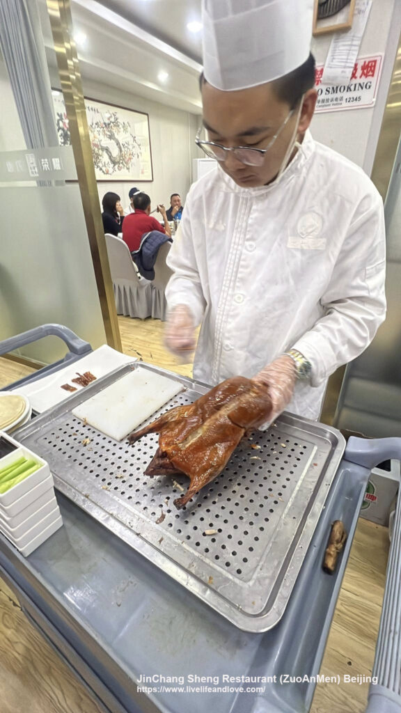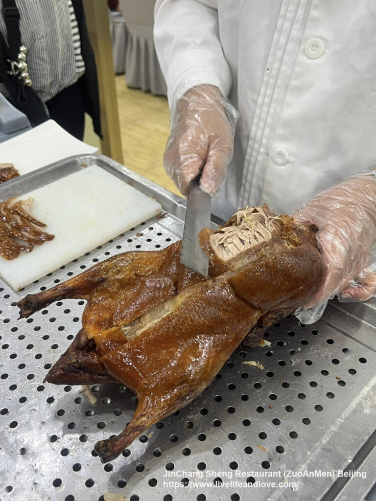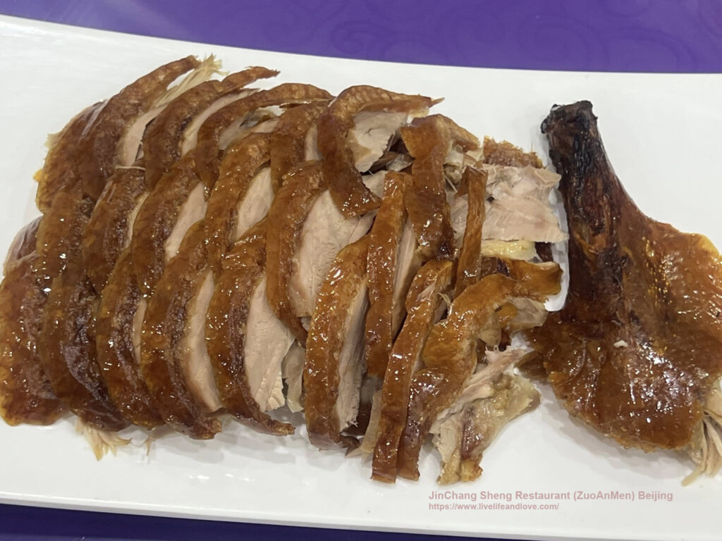The Peking duck is looking great, perfectly cooked, and the smell is fantastic. It was incredibly delicious, and the skin is wonderfully crispy. It’s sure to be the star of the table.